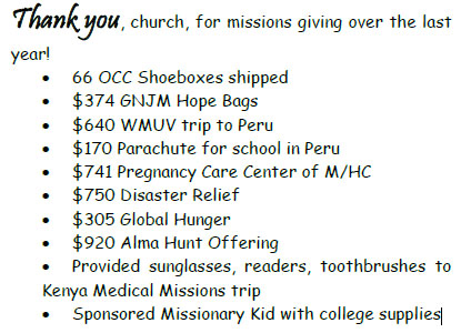 and paper products. Check out the church bulletin to